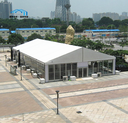 WT Tent's exhibition event tent has a variety of configurations available for purchase, its function and purpose has been further expanded, common configuration are following: side wall covering with transparent PVC window, ground anchors, columns bearing plate, interior ceiling, glass walls glass door, ABS hardware wall, transparent tarpaulin and side wall coverings, floor systems, drainage channels, other special tents units.